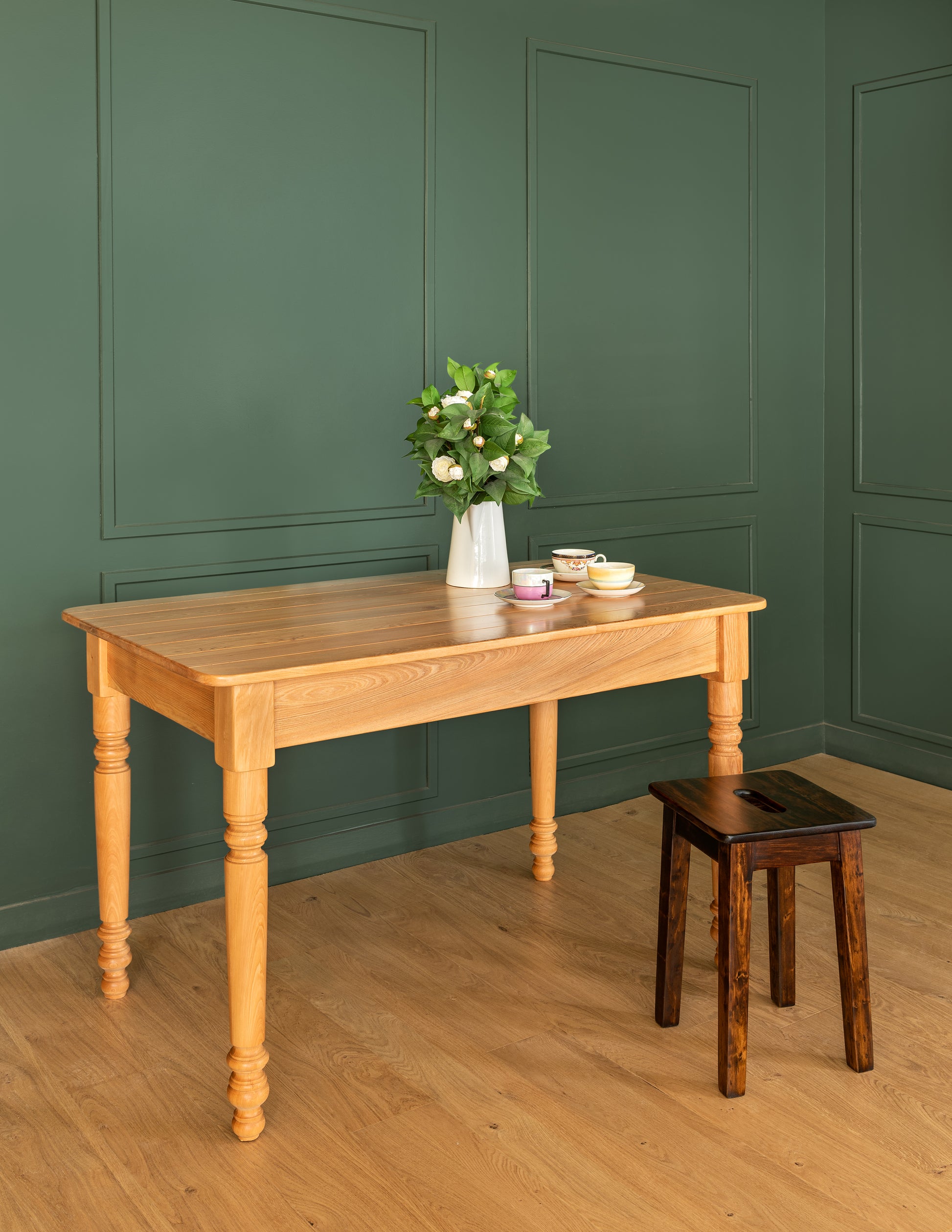 ¡Logra ese estilo tradicional y campestre! Esta mesa es el resultado de la inspiración proveniente de las casas de campo de los valles centrales de nuestro país, en donde las casas patronales estaban llenas de muebles con inmensurable valor. La clásica mesa de comedor con pata torneada, cubierta redondeada y desgastada por su uso, es una pieza que no falta en estas hermosas villas. Buscando recrear este sentido estético, y sumándole la funcionalidad actual que se le podría dar a ese diseño, es que nace la primera mesa de comedor Colón. Hoy podemos decir que es una piedra angular de esta colección.